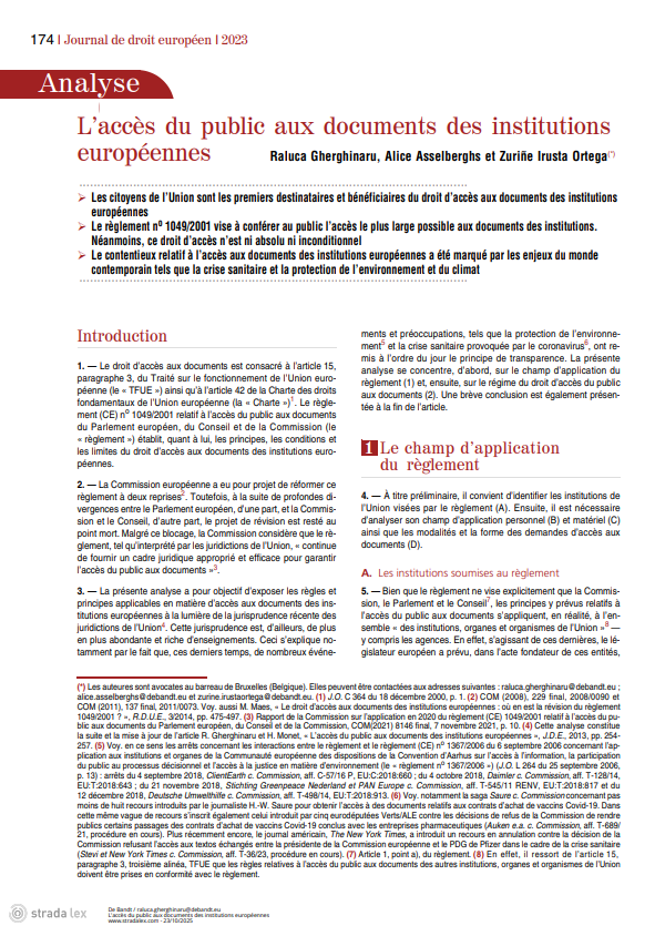 Le contentieux relatif à l’accès aux documents des institutions européennes est devenu complexe et technique, ce qui peut représenter un défi pour les praticiens du droit européen et, encore plus, pour les citoyens de l’Union qui sont les premiers destinataires et bénéficiaires de ce droit d’accès. Ensuite, ce contentieux a été marqué par les enjeux majeurs du monde actuel, tels que la crise sanitaire et la protection de l’environnement et du climat. Enfin, ce qui est le plus marquant, c’est que le principe de transparence est de plus en plus utilisé par les citoyens pour comprendre comment les institutions européennes prennent les décisions et gèrent les crises et les défis auxquels elles sont confrontées. Le principe de transparence constitue ainsi, plus que jamais, le pilier central de nos démocraties contemporaines.